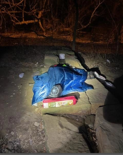 Six of us had gone into the woods, down a trail where we only sometimes find people. The last time we were in the area, we saw signs of recent camps but had not found people. We do not open standing tents for any reason. Just because a person is homeless, they still have a right to privacy. This means we depend on a person calling out in response to us.