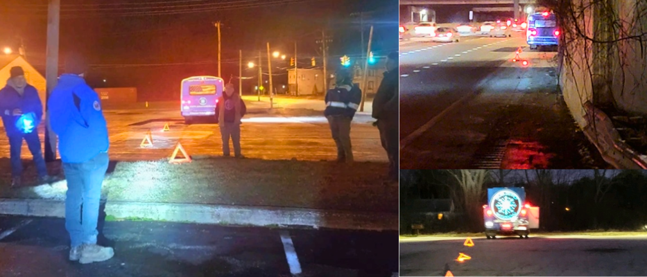 Breakdowns are one of the more dangerous situations for us. We are typically out when the weather is the worst. The visibility is poor. We took every opportunity that we could to practice roadside safety measures. We discussed scenarios where it might be safer to be in the vehicle and when to evacuate the team. This training paid off on our return trip from Chicago when our truck had mechanical issues on the freeway.