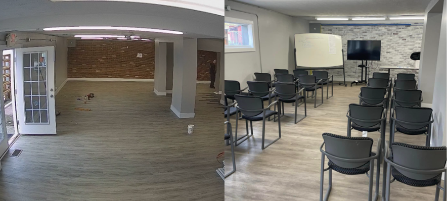 Last year, our Mission worked with Progressive Insurance to convert a section of our headquarters into a Homeless Veteran Training and Treatment area. The space is designed to work with our Homeless Veterans Re-Empowerment Project. It also has different spaces for other conversations: a conference area, a living room, a private office, and various 2-10-person areas. When service providers cannot get our clients in, we want to have a space to bring the service to our clients.