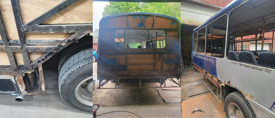 Our “offseason” is often filled with small projects for the vehicles peppered into calendar gaps around our Summer Event schedule. Last Summer, some small projects turned into larger ones. One example is our lengthy bus rust repairs. What started as repairing a few rust spots turned into a complete replacement of body panels and the underlying attachment grid with aluminum instead of steel. A budget of $3000 ballooned to $12,000 with paint and lettering.